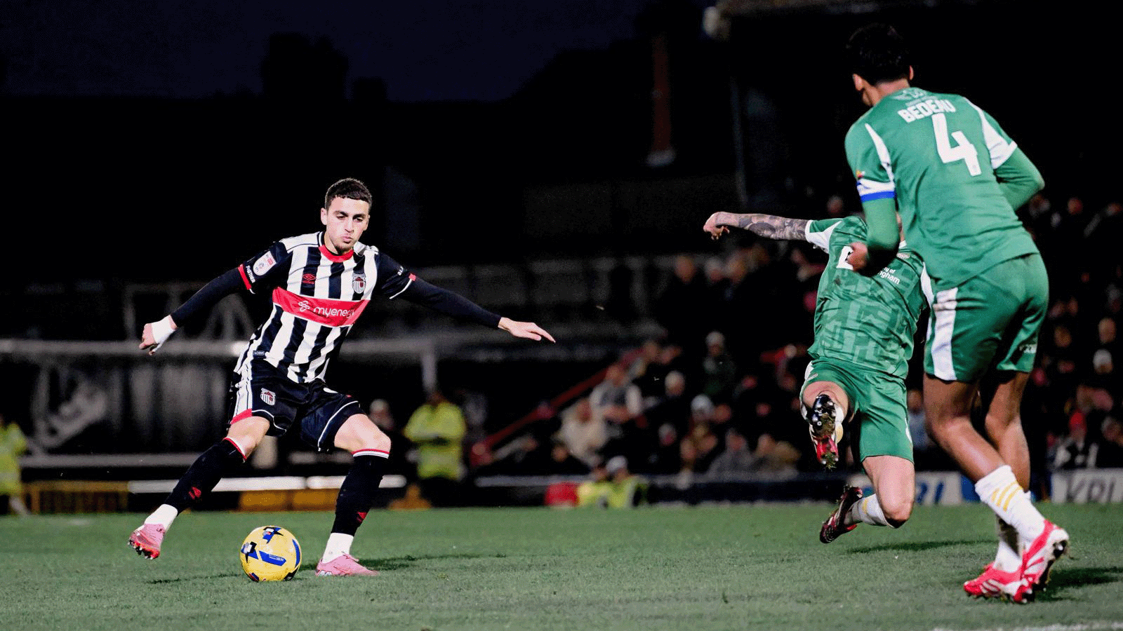 Notts also won the first corner after Tom Iorpenda drove into the box from the left and sent a low cross over. The flag-kick broke for Bennetts and he worked the space for a shot from 20 yards but fired over the bar. a challenge in